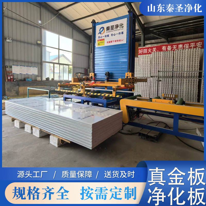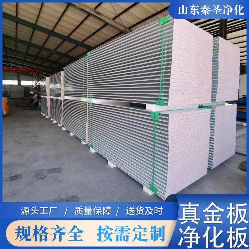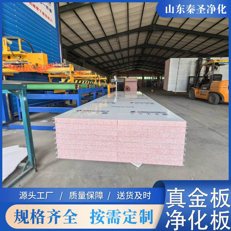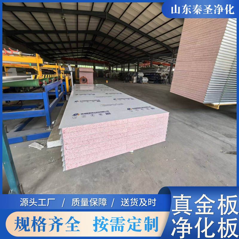 上/下鋼板可以用彩色鋼板或不銹鋼板,厚度大約在0.3-1.0mm左右,芯材由真金板構(gòu)成,板材的有效寬度為950/1150mm,厚度為50-100mm。長度按客戶要求定做。板面保護形式為覆PVC保護膜。
