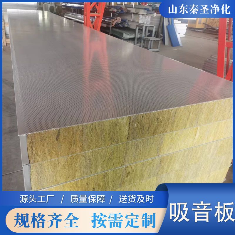 采用0.5-1.0mm彩涂板、鍍鋅板或不銹鋼板沖微孔處理;微孔直徑一般為2.5mm,微孔中心孔距5mm,并成60度角排列,穿孔率達到23%,由于吸音復(fù)合板面板是有孔的彩鋼而芯材是采用巖棉或玻璃棉復(fù)合成型,能很好的阻止空氣流動,使聲波受到阻礙,提高了吸聲系數(shù),同時提高了板材自身強度。板材的有效寬度為950/1150mm,厚度為50-150mm。長度按客戶要求定做。板面保護形式為覆PVC保護膜。